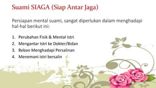 Walaupun tugas suami tak seberat tugas istri saat persalinan tetapi tugas suami untuk membantu. Silviana Theodora AmdKeb SKM Post on 22 February 2022 KELAHIRAN buah hati menjadi peristiwa yang istimewa bagi pasangan suami istri bahkan menjadi momen yang dinantikan. Dengan memegang tangan istri dan menjaga kontak mata keduanya dapat menjadi salah satu cara menghibur istri di tengah proses persalinan.